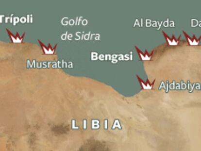 El dictador libio comparece unos segundos en televisión y carga contra la prensa extranjera. - El Ejército emplea artillería pesada contra los manifestantes horas después de que el ministro de Justicia anuncie su dimisión por el "uso excesivo de la fuerza". - El régimen pierde el control del este del país. -Deserciones de políticos y jefes del Ejército