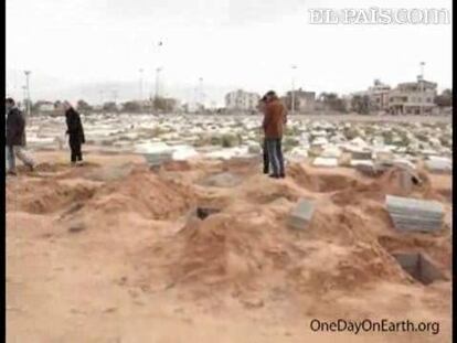 El vídeo, facilitado por la organización onedayonearth.org, muestra la apertura masiva de fosas en el cementerio de las playas de Trípoli, este martes, tras la represión de las protestas en la capital libia