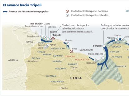 Grupos de jóvenes tunecinos se erigen en improvisados funcionarios e intentan contener la avalancha humana que huye de la represión de Gadafi a través del paso fronterizo de Ras el Ajdir