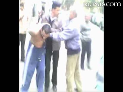Varios militares golpean con un látigo a un detenido y le acusan de ladrón ("harami") en El Cairo, en un vídeo grabado por un vecino con el móvil