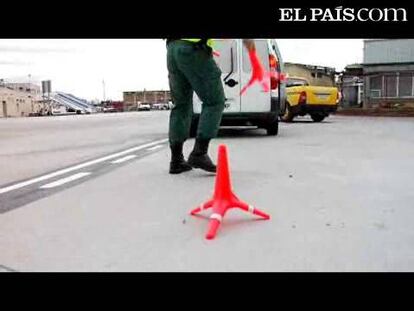 La Guardia Civil y AENA realizan controles de alcoholemia y de velocidad en las instalaciones del aeropuerto madrileño debido al alto número de accidentes. Por Barajas circulan cerca de 5.000 vehículos de todo tipo.