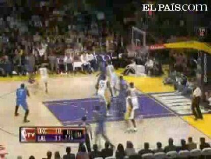 Los Lakers perdieron ante Oklahoma City Thunder 120-106 pese a la buena actuación de Kobe Bryant y Pau Gasol, que anotaron 31 y 26 puntos, respectivamente.