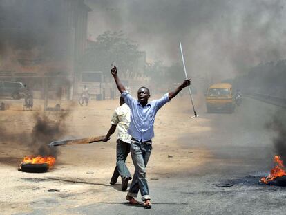 Manifestantes armados en Kano, Nigeria