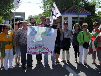 El 'lehendakari' insta a la coalición a dejar clara su postura frente a la banda Ander Errandonea Arruti desplegó una gran pancarta de la coalición electoral Bildu