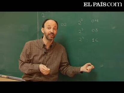<a href="http://www.unizar.es/matematicas/algebra/elduque" target="blank">Alberto Elduque</a>, catedrático de Álgebra de la <a href="http://www.unizar.es/" target="blank">Universidad Zaragoza</a>, resuelve el noveno desafío de EL PAÍS con el que celebramos el <a href="http://www.rsme.es/centenario/" target="blank">centenario de la Real Sociedad Matemática Española</a>. La enorme potencia de dos que buscábamos acaba en 52, tal y como explica el profesor. <p>El ganador de <a href="http://www.elpais.com/promociones/matematicas/">una biblioteca matemática</a> como la que entrega cada semana EL PAÍS ha sido en esta ocasión <b>Pablo Pajuelo Cabezas</b>. Este domingo, en el quiosco, por 9,95 euros con el periódico, <i>Una nueva manera de ver el mundo</i>, de María Isabel Binimelis. </p> <a href="http://www.elpais.com/articulo/sociedad/enorme/numero/acaba/52/elpepusoc/20110517elpepusoc_2/Tes">VER LA SOLUCIÓN POR ESCRITO Y LOS PROBLEMAS ANTERIORES</a>