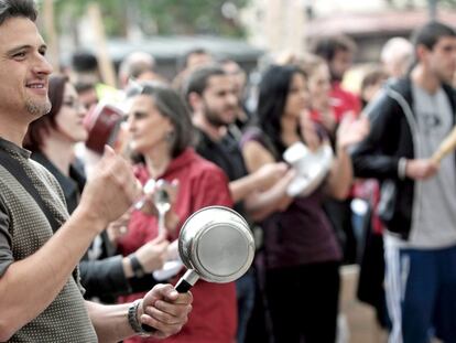 En la asamblea celebrada esta mañana, los acampados expresan sus diversas quejas, que van desde la reforma de la Ley Electoral a la propuesta de que los políticos cobren el salario mínimo