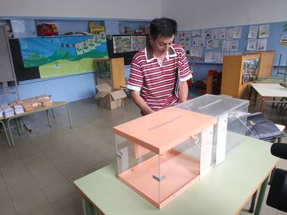 Preparación de urnas en un colegio electoral