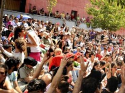 Cientos de personas asisten a decenas de reuniones en Madrid Los ‘indignados’ barceloneses limpian la plaza de Catalunya tras los incidentes de ayer
