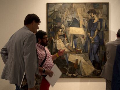 Visitantes ante una de las obras cubistas de Diego Rivera