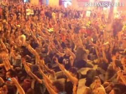 A medianoche, los indignados concentrados en la Puerta del Sol de Madrid han protestado con un minuto de silencio