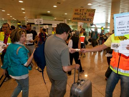 Medio centenar de profesionales protestan en el aeropuerto de El Prat de Barcelona por la "precaria" situación del transporte sanitario urgente