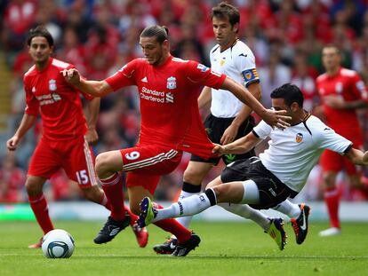 Rami, defensa del Valencia, comete falta ante Carroll
