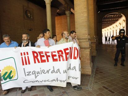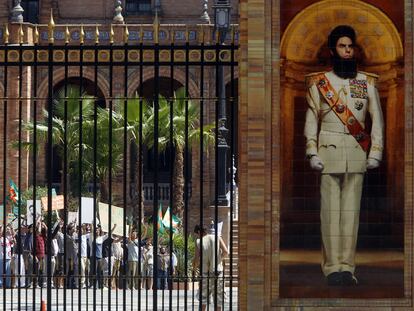 Una manifestación de IU en Sevilla choca con una protesta ficticia de 'El dictador'