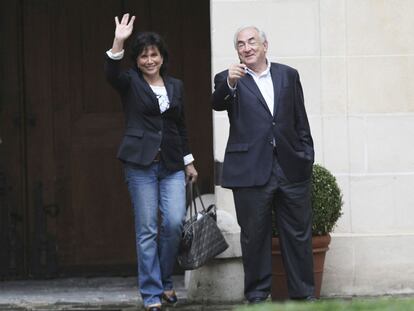 Strauss-Kahn y su esposa, Anne Sinclai, a la entrada de su apartamento