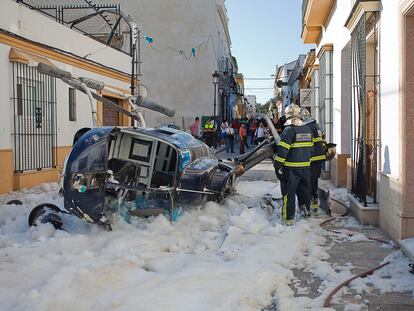 Tres heridos al caer un helicóptero en pleno centro de El Puerto