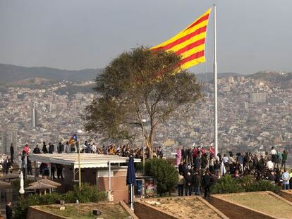 El Ayuntamiento coloca en un baluarte del castillo la bandera catalana que fue retirada por las tropas franquistas en 1939