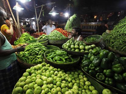 Puesto de verduras en un mercado de la ciudad india de Calcuta