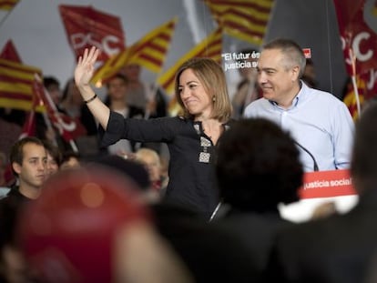 "Allá donde estés, Pere, yo estaré cerca", ha dicho la candidata a Pere Navarro. El primer edil de Terrassa se postula para sustituir a José Montilla en la dirección del partido