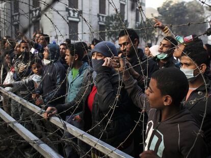 Una alambrada levantada por el Ejército cerca de la plaza de Tahrir