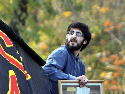 Un iraní muestra una foto de la reina de Inglaterra robada de la Embajada británica