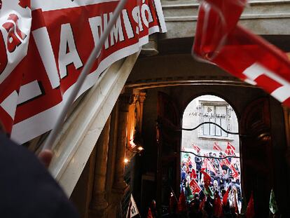 Un grupo de sindicalistas en el interior del palacio de Fuentehermosa