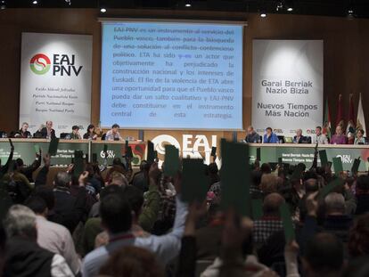 Una de las votaciones realizadas ayer en la asamblea general del PNV