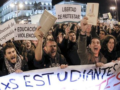 Los manifestantes insultan a la policía por la dureza de las cargas contra los jóvenes que rechazaban los recortes Otras ciudades también marcharon a favor de las reivindicaciones de los estudiantes