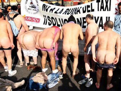 Un grupo de conductores denuncia la falta de apoyo oficial quitándose la ropa en Valencia Los autónomos sufren la concentración de licencias en manos de muy pocas empresas