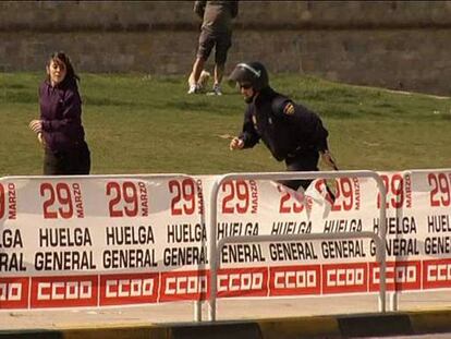 La policía emplea cargas y pelotazos de goma contra algunos manifestantes que destrzoan escaparates y queman contenedores de basura