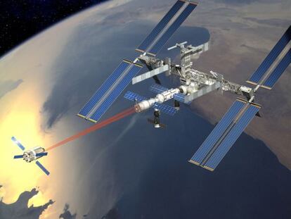 El ATV ‘Edoardo Amaldi’' permanecerá unido a la base orbital hasta finales de agosto Fue lanzado al espacio el pasado viernes con suministros para la tripulación y combustible