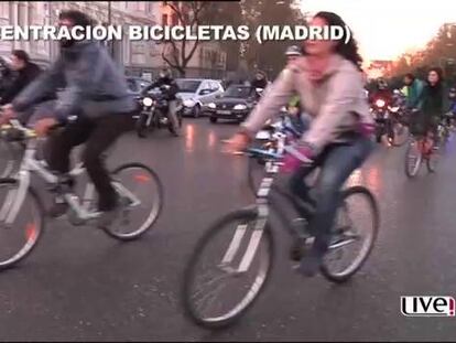 Un grupo de ciclistas expresa su rechazo a la reforma laboral pedaleando por las calles de Madrid
