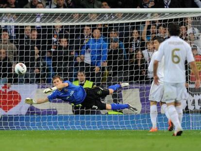 Guaita, que el curso pasado ya deslumbró en el Bernabéu y Old Trafford, hizo ocho intervenciones decisivas ante el Madrid