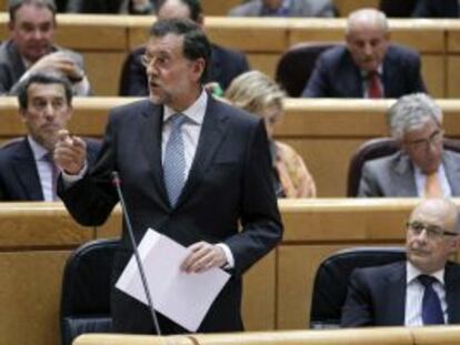 El jefe del Ejecutivo rehúye responder a los periodistas en el pasillo del Senado