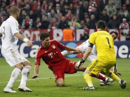 El equipo de Mourinho, muy contenido, cae ante el Bayern en el tramo final tras una jugada mal defendida por Coentrão.- El cuadro español apenas tuvo protagonismo en ataque