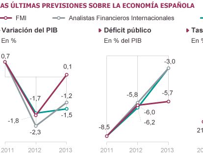 El servicio de estudios cree que el déficit sobrepasará este año el 6%, frente al 5,3% pactado El PIB caerá un 1,5% en 2013 por las medidas adicionales de ajuste, según el nuevo pronóstico El Instituto Flores de Lemus predice que se llegará a los seis millones de parados