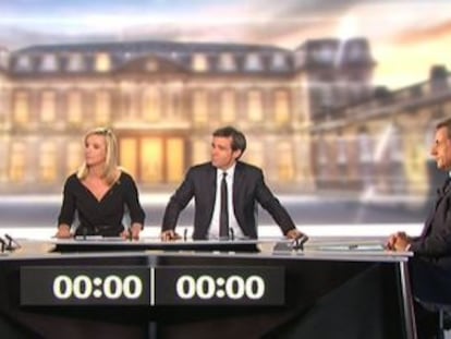 Sarkozy usa España para atacar a Hollande: "Zapatero es el único presidente que le ha recibido" El líder conservador saca el escándalo de DSK y llama a su adversario "pequeño calumniador" El aspirante socialista insiste en renegociar los pactos europeos e incluir los eurobonos El presidente candidato: "Es una elección histórica, Francia no tiene derecho a cometer errores" Sarkozy propone reducir a la mitad el flujo migratorio e insiste en revisar Schengen Hollande le acusa de "islamofobia" y separa la laicidad del derecho a voto de los inmigrantes