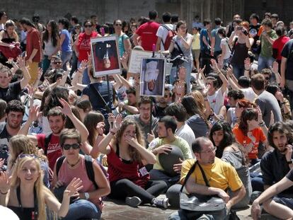 3.000 universitarios protestan contra la subida de tasas en el centro de Valencia La asamblea estudiantil decide sumarse a la huelga del sistema educativo el 16 de mayo