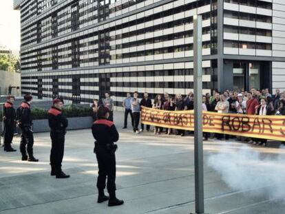 Los trabajadores han respetado los servicios mínimos aprobados por el Gobierno catalán La protesta de la plantilla se ha trasladado a las puertas de la sede de Ferrrocarrils