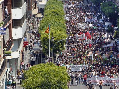 Educación obliga a trabajar al 30% de la plantilla, pero admite que 10.453 docentes han parado La Delegación del Gobierno cifra en 10.000 los manifestantes reunidos en Valencia