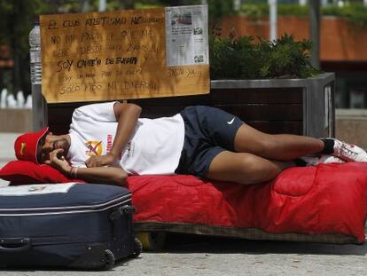 El atleta español de origen saharaui lleva una semana en la plaza del Ayuntamiento de Alcobendas para que su club, el Club Atletismo Popular, le pague una deuda de 7.700 euros