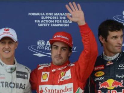 El asturiano es el mejor en una clasificación marcada por la lluvia, por delante de Webber y Schumacher