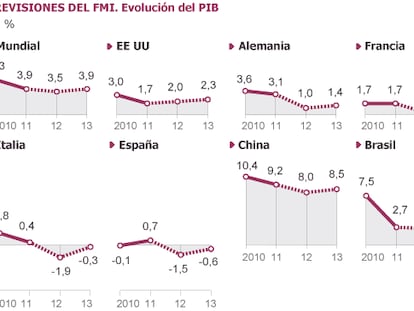 La crisis del euro y el posible ajuste fiscal en EE UU centran la preocupación del Fondo El organismo hace una ligera rebaja en su pronóstico para la economía mundial en 2012 y 2013 Aplaude a la UE por el avance en la unión bancaria, pero urge a adoptar nuevas medidas