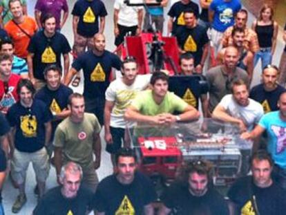 Cinco trabajadores del sector venden camisetas, explican el conflicto y recogen firmas