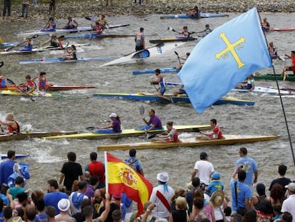 La mucha bebida y no poca comida hacen cada verano de este descenso en piragua una peculiar cita para turistas y curiosos