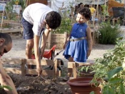 Una treintena de vecinos de Poble Nou montan un huerto en un solar ocupado