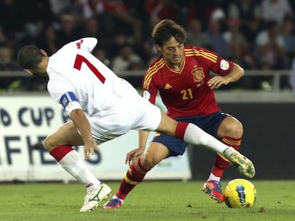 El ariete, en su primer partido oficial como titular, rompe al final la muralla georgiana y alivia a España en un partido angustioso Con 0-0, primero Silva y luego Amisulashvili remataron al palo
