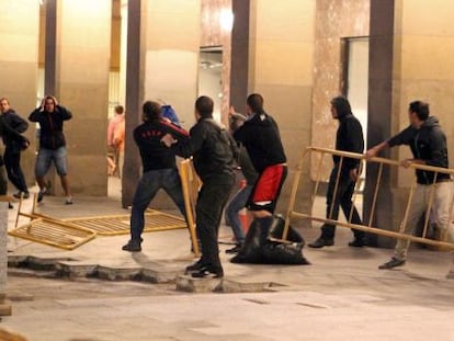 Los alborotadores, de extrema derecha, llegaron a atacar a algunos de los oyentes ya en la calle
