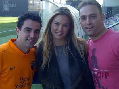 Xavi Hernández posa con la modelo y la mujer de Cesc le para los pies Otras mujeres de jugadores azulgrana la secundan