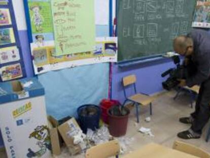 Una pintada amenazante sobre el colegio público de Valencia con el nombre del escritor advierte: “En colegios como este comienza la destrucción de España”