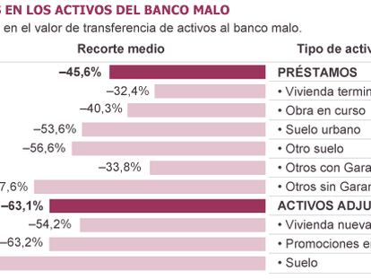 La sociedad asumirá los pisos de la banca con un descuento de hasta el 54% La rebaja media en los créditos e inmuebles adjudicados será del 63% La Sareb podrá llegar a gestionar activos por 60.000 millones ya en 2013 Las entidades nacionalizadas aportarán 45.000 millones en bienes tóxicos